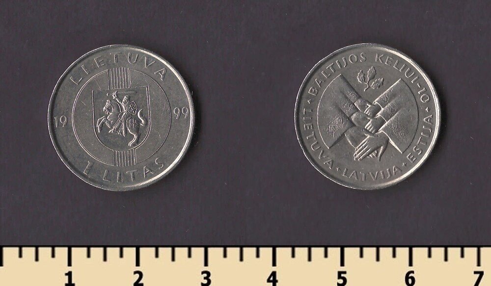 Описание: Первая монета/жетон, выпущенная современным монетным двором Литвы. Имел обращение на ярмарках и в пивной торговле. Выпущено сообществом литовских физиков.
