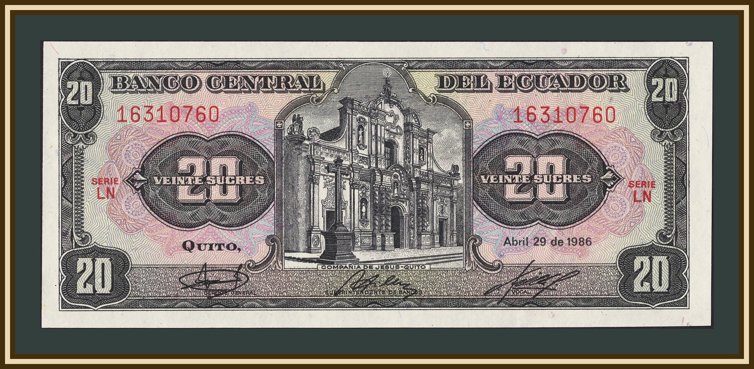 Номинальная стоимость: *20 S/. - Эквадорский сукре