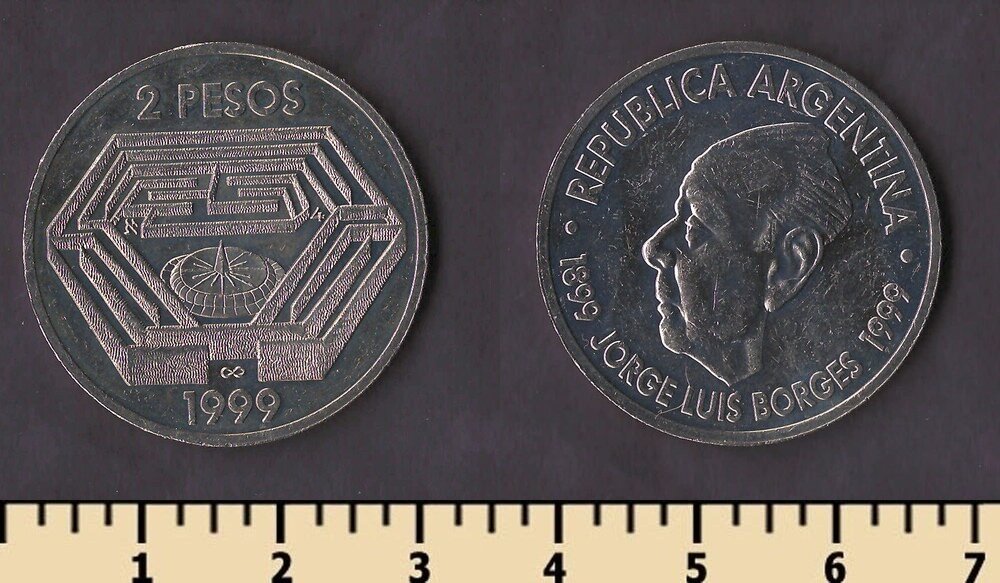 Состояние: на скане, может незначительно отличаться от представленного. Номер по каталогу Краузе: KM#128 Тираж: 1.000.000 Материал: медно-никелевый сплав Вес: 10,5 гр Диаметр: 30 мм Тип гурта: рубчатый Примечание: Описание: Хорхе Луис Борхес