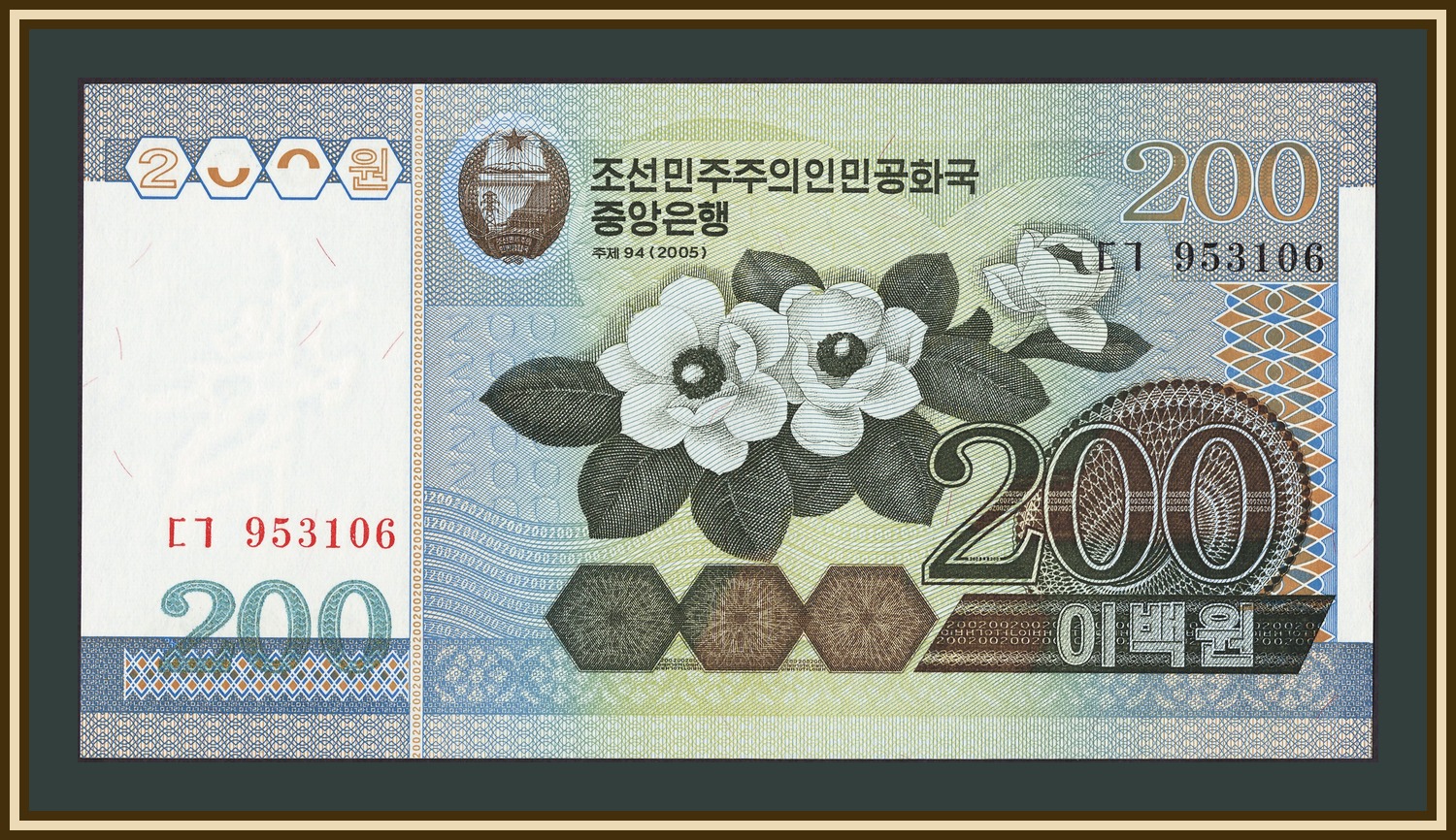 Принтер: - Номинальная стоимость: 200 ₩ - Северокорейская вона