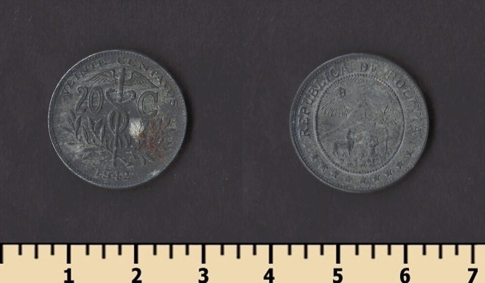Номинальная стоимость: 20 Bs. - Боливийский боливиано Подписи: Pablo Ramos Sánchez & Carlos Alberto Colodro López