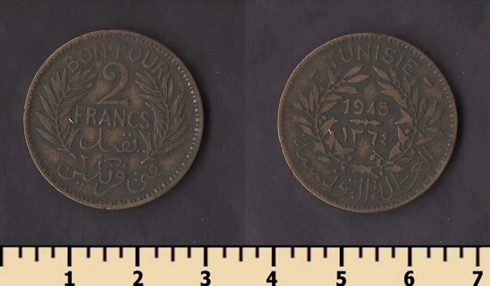 Тунис 2 франка 1945