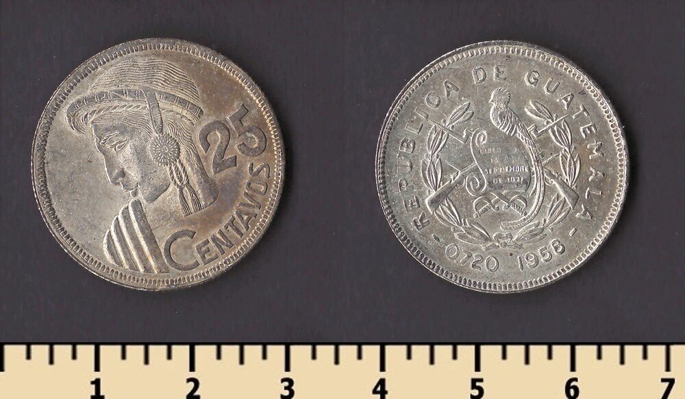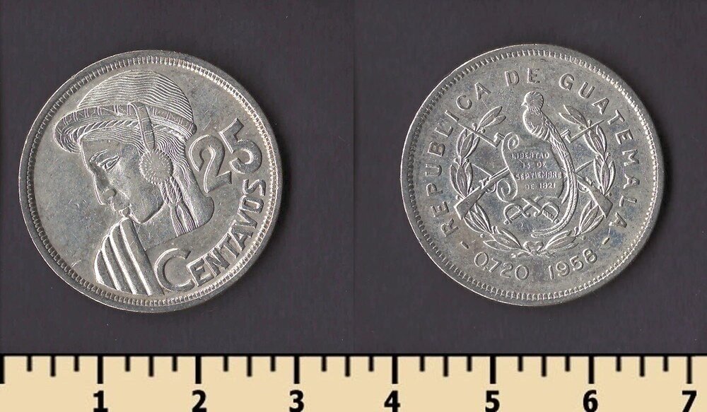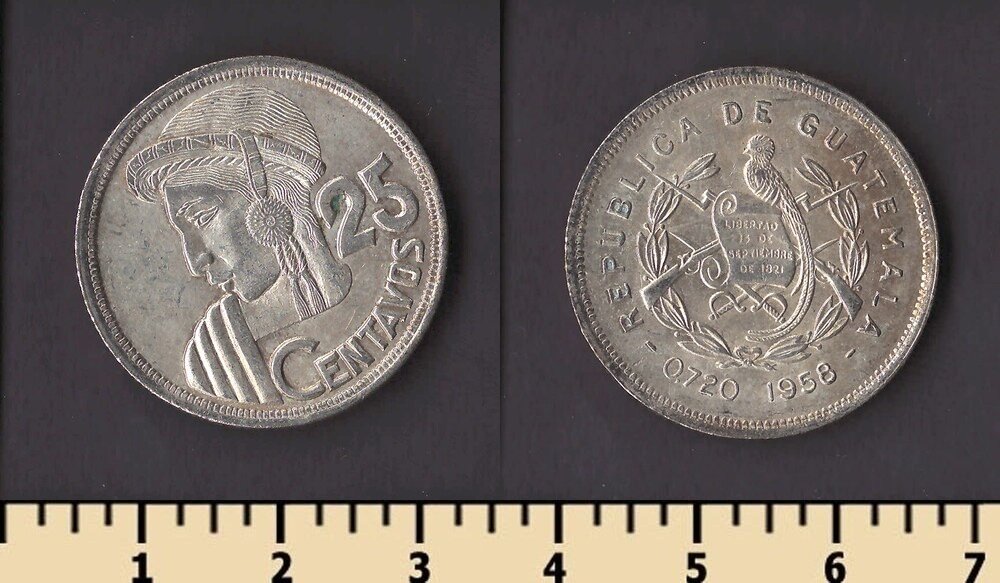 Тип гурта: гладкий с вдавленной надписью “REPUBLICA DE GUATEMALA C.A.”