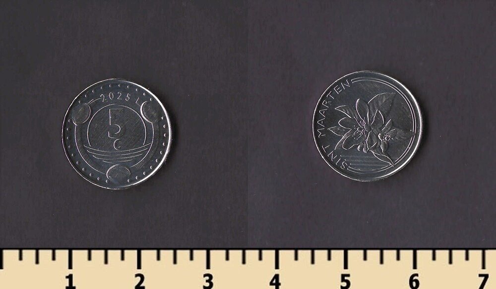 Номер по каталогу Краузе: KM# Тираж: Материал: никелированная сталь Вес: 2.42 гр Диаметр: 16.75 мм Тип гурта: прерывисто-рубчатый Примечание: Описание: 10 октября 2010 года Синт-Мартен получили автономный статус в составе Королевства Нидерландов и был введен карибский гульден.