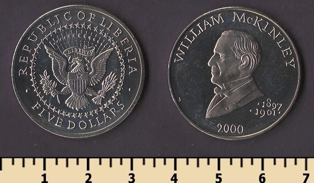 Номер по каталогу Краузе: KM#933 Тираж: Материал: медно-никелевый сплав Вес: 11.22 гр Диаметр: 31.5 мм Тип гурта: рубчатый Примечание: Описание: Уильям Мак-Кинли