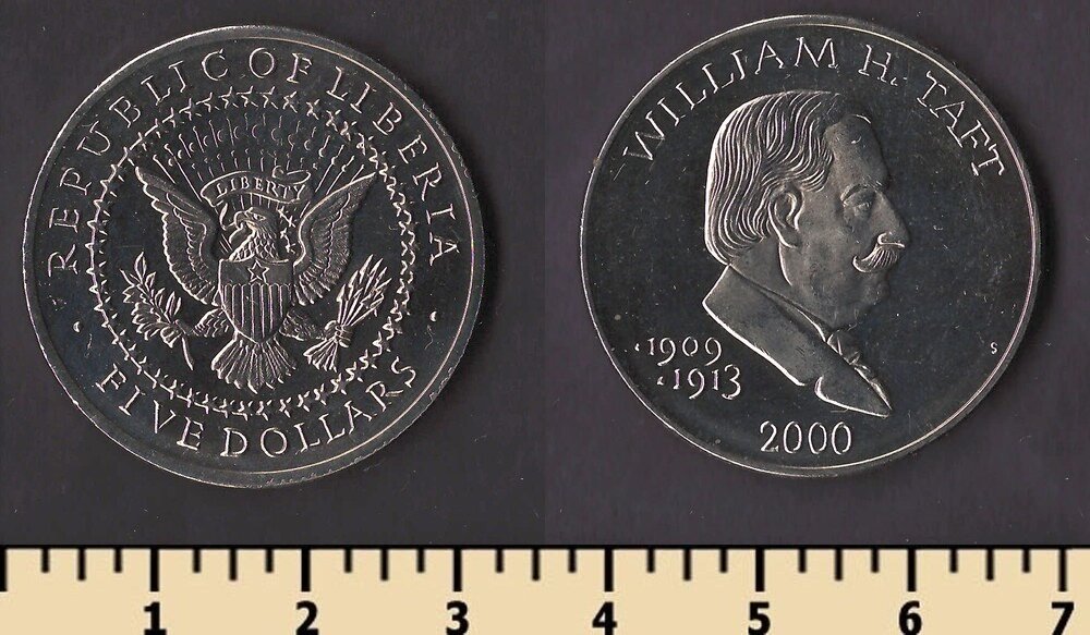 Номер по каталогу Краузе: KM#935 Тираж: Материал: медно-никелевый сплав Вес: 11.22 гр Диаметр: 31.5 мм Тип гурта: рубчатый Примечание: Описание: Уильям Говард Тафт