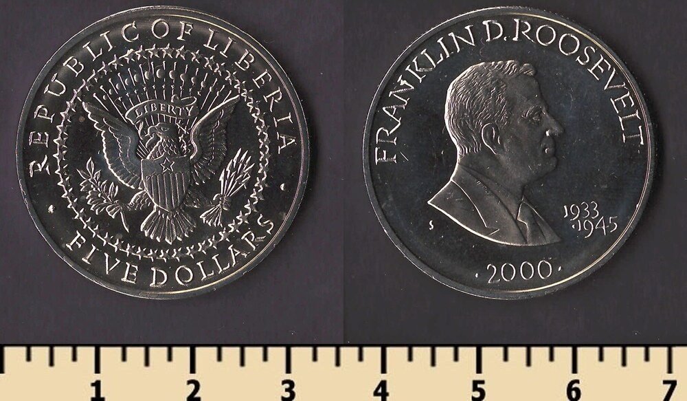 Состояние: на скане Номер по каталогу Краузе: KM#940 Тираж: Материал: медно-никелевый сплав Вес: 11.22 гр Диаметр: 31.5 мм Тип гурта: рубчатый Примечание: Описание: Франклин Рузвельт