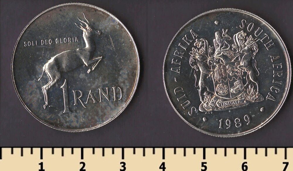 Состояние: на скане Номер по каталогу Краузе:KM#88а Тираж: 21.335.000 Материал:никель Вес: 12 гр Диаметр: 31 мм Тип гурта: рубчатый Примечание: Спрингбок