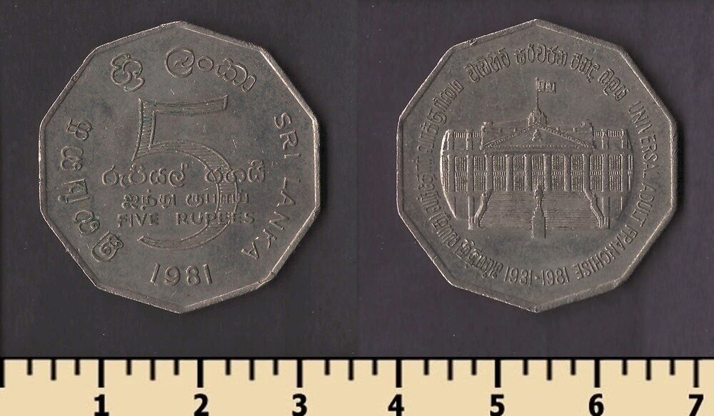 Тип гурта: рубчатый с надписью ශී.ලං.ම.බැං இ.ம.வ. C.B.S.L.
