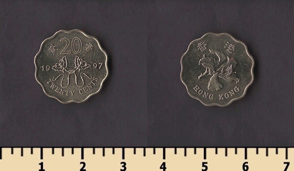 Тип гурта: рубчатый с вырезом по всей длине и надписью HONG KONG FIVE DOLLARS 香港伍圓