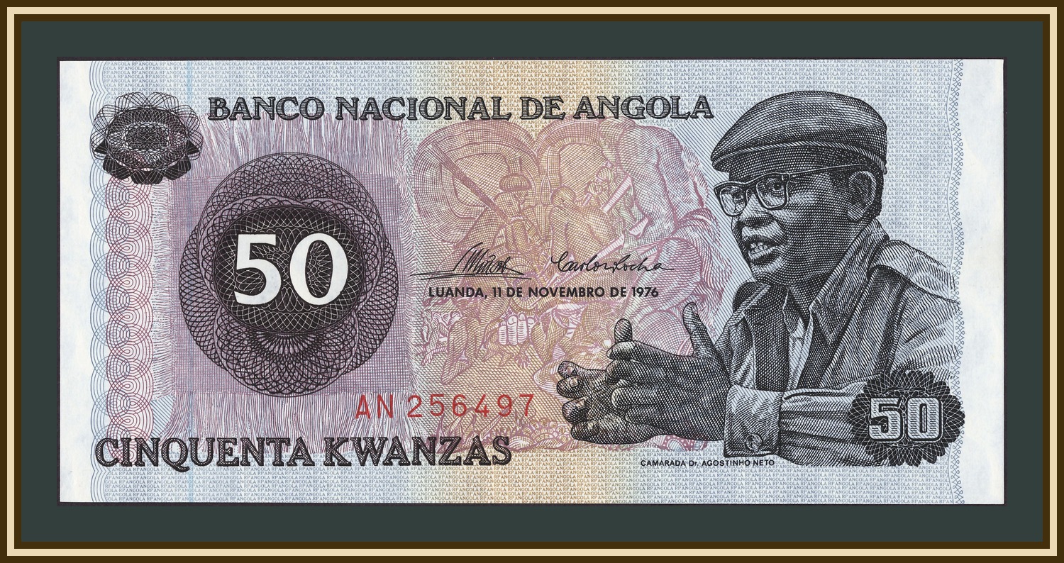 Описание: Жозе Эдуарду душ Сантуш — второй президент Анголы в течение 38 лет с 21 сентября 1979 г. до 26 сентября 2017 г. / Антонио Агостиньо Нето — ангольский государственный деятель, поэт, первый президент Народной Республики Ангола с 1975 по 1979 год, председатель МПЛА—Партии труда.