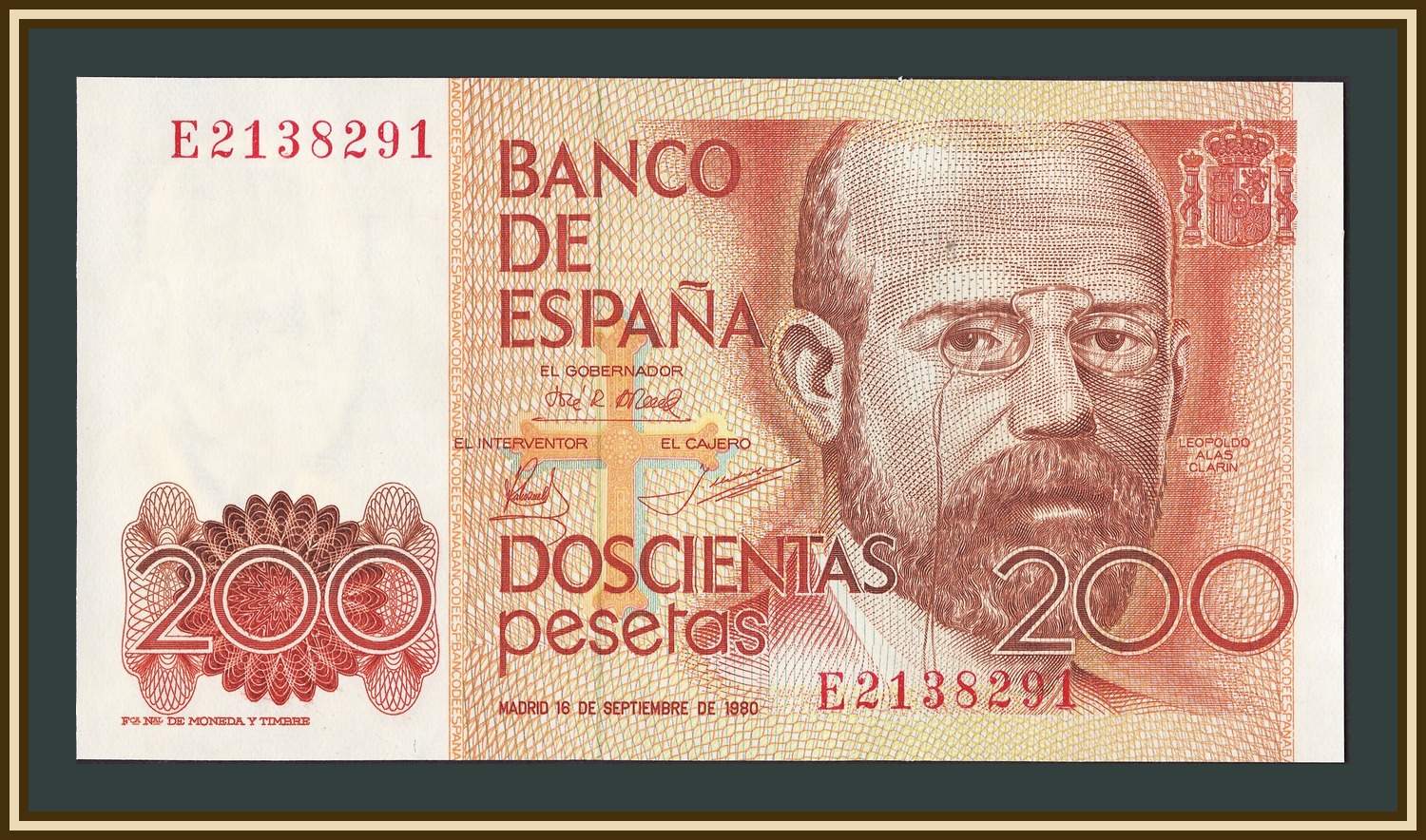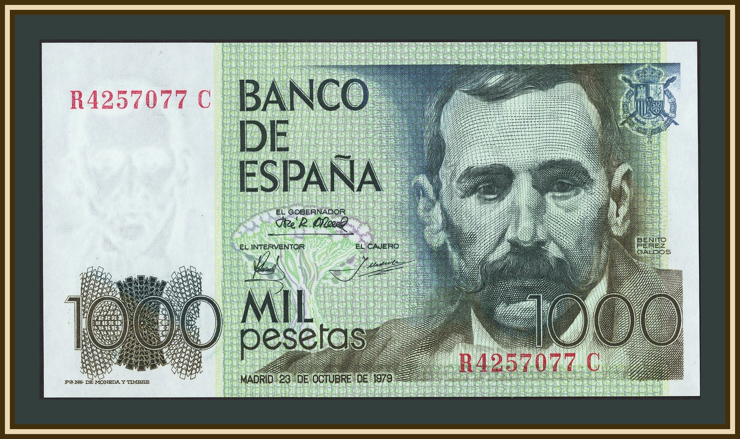 Подписи: Luis Ángel Rojo Duque (Gobernador), Esteban Róspide Echeto (Interventor), Jesús Urdiola Salvador (Cajero)