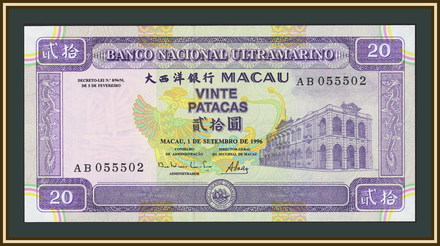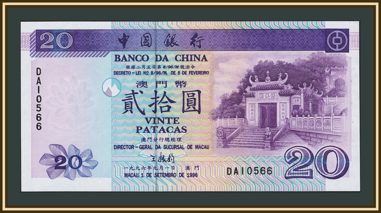 Номинальная стоимость: 20 P - Патака Макао