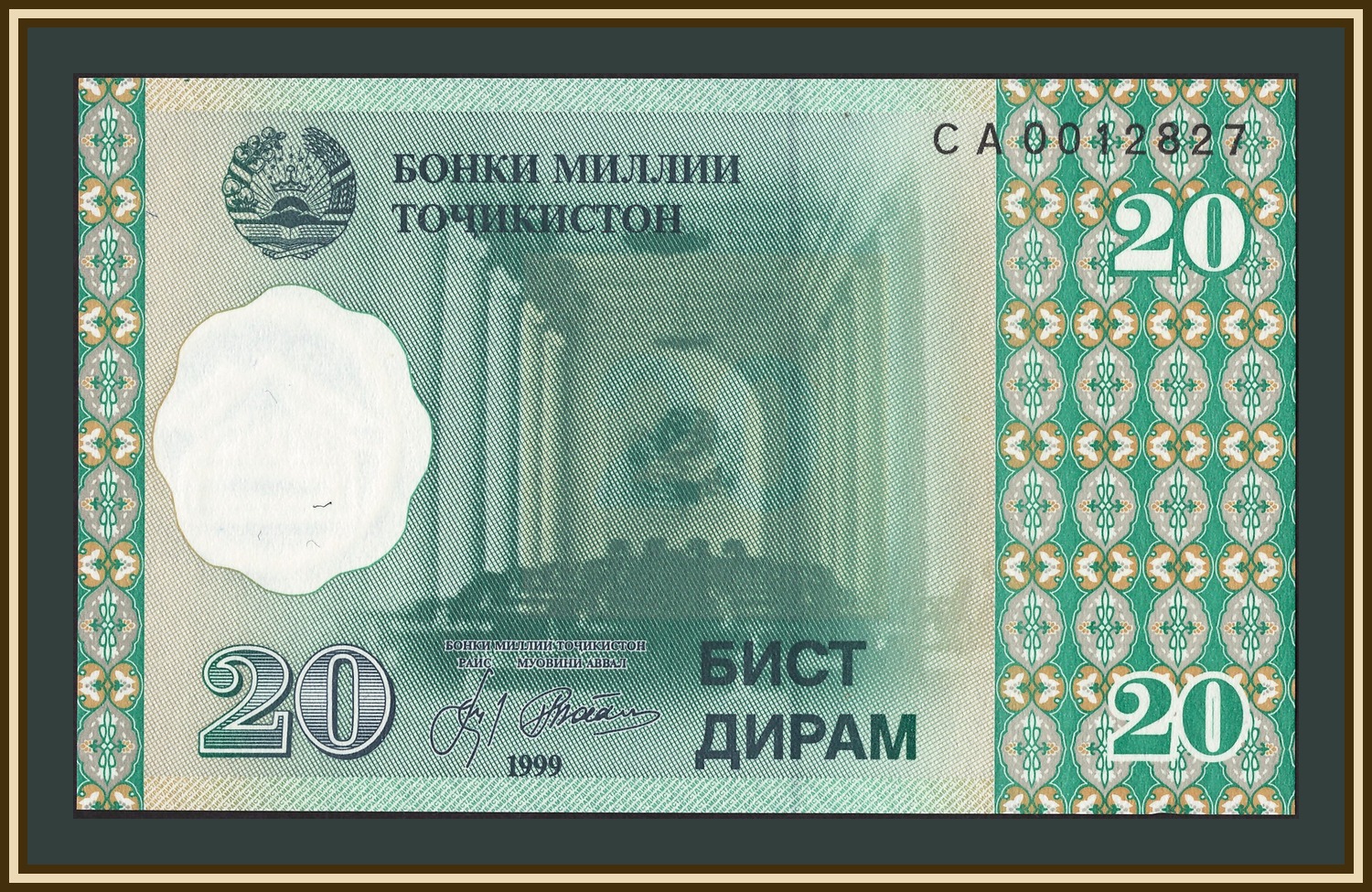 Номинальная стоимость: *20 SM - Таджикский сомони