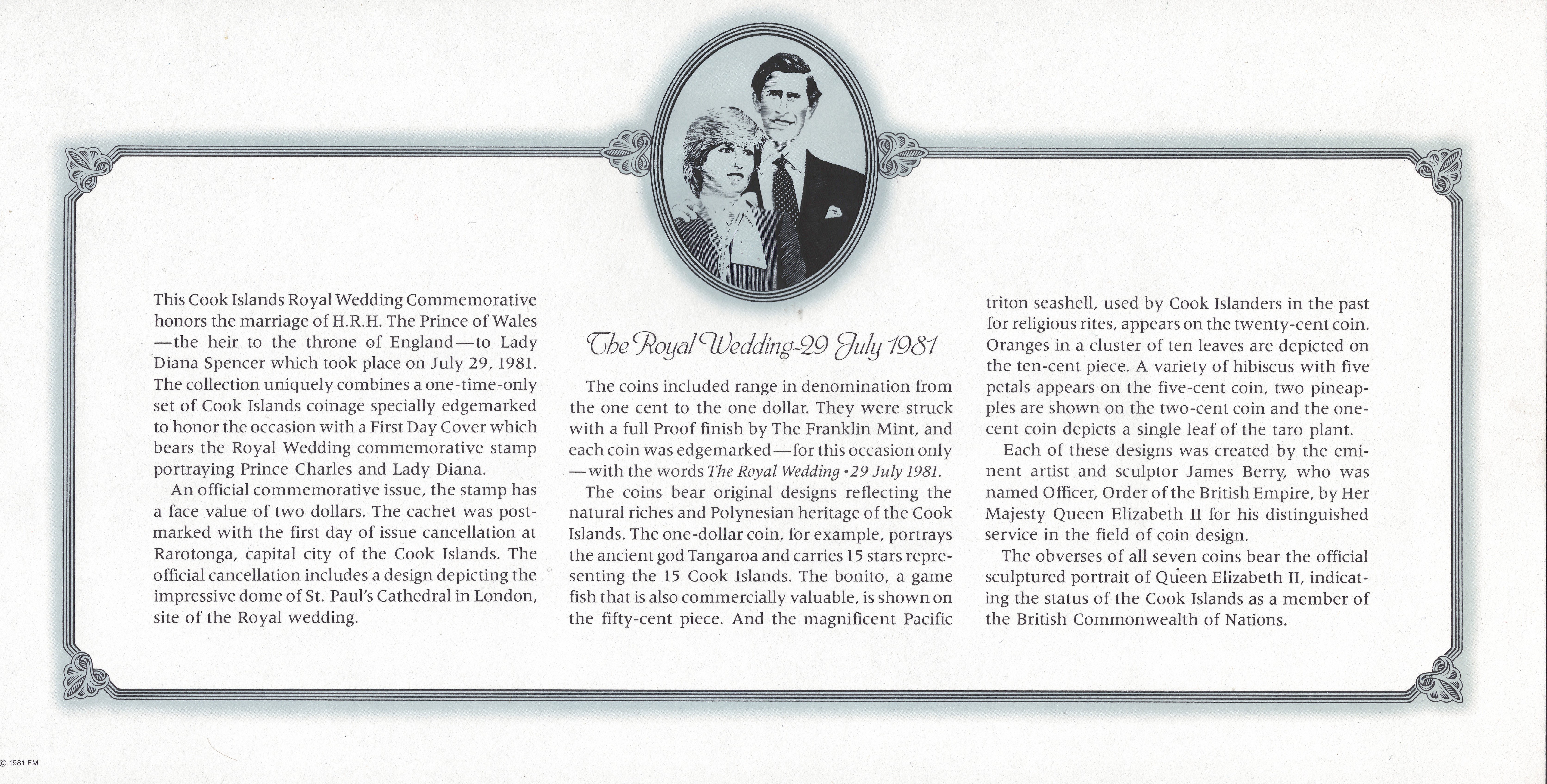 Тип гурта: гладкий с надписью THE ROYAL WEDDING 29 JULY 1981